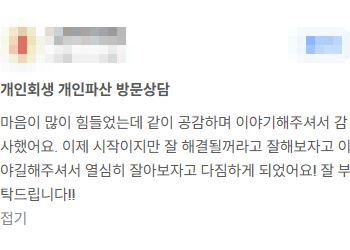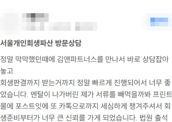 - 김앤파트너스후기│다른 곳에서 상담했을 때 금액보다 적은 최저변제액으로 개시결정 났습니다