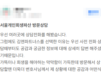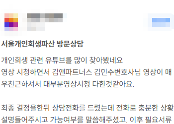 - 김앤파트너스후기│소통도 잘되고 무엇보다 변제율이 만족스럽게 나왔습니다