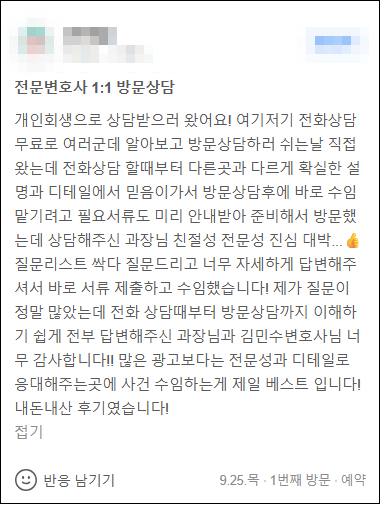 실제로 상담을 받은 후엔 바로 수임을 맡기기로 결정하셨습니다.