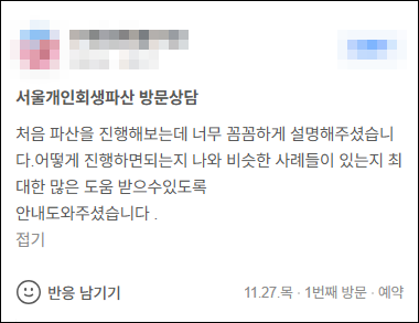 “처음 파산을 진행해보는 거라 정말 막막했는데, 너무 꼼꼼하게 설명해주셨습니다.