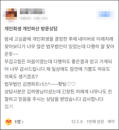 “밤새 고심 끝에 개인회생을 결정한 후, 네이버로 여러 법무법인을 찾아봤는데 다행히 잘 찾아온 것 같아요.
