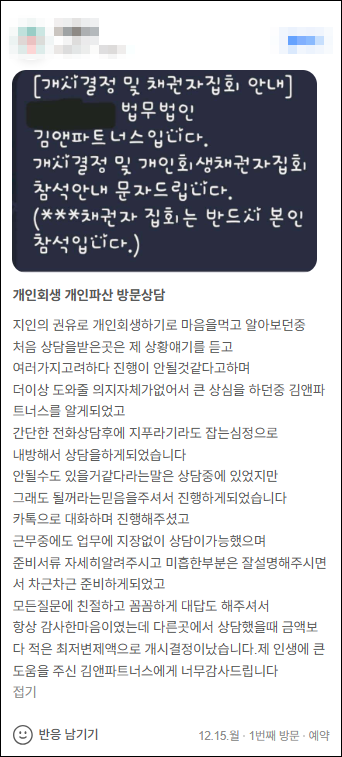 #법무법인김앤파트너스후기 #김앤파트너스후기 #김앤파트너스추천 #김앤파트너스상담후기 #김앤파트너스회생후기 #김앤파트너스파산후기 #개인회생후기 #개인파산후기 #김앤파트너스개인회생 #김앤파트너스개인파산 #회생파산사무실 #개시결정후기 #인가결정후기 #면책결정후기