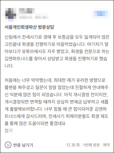 김앤파트너스후기│전세사기 피해자분들도 회생 제도를 통해 많은 도움이 되면 좋겠어요